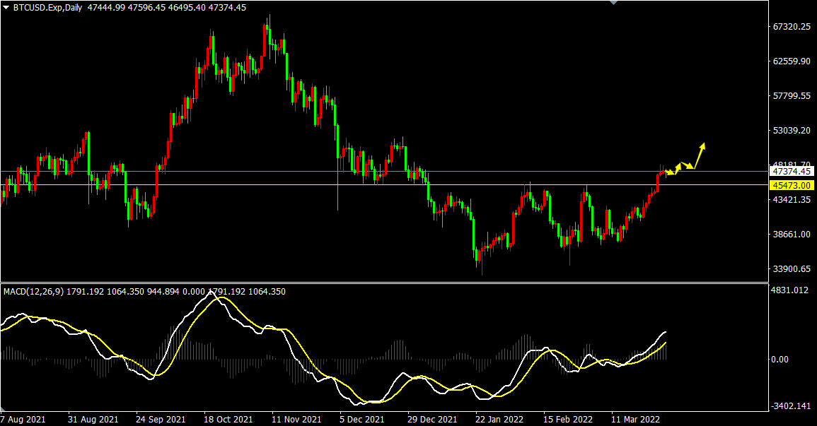 从比特币日K图来看,比特币短线暂无大变化,整体则依旧延续突破看多形态,目前短线可操作的空间并不大,且回踩形态在多头情况下也并不好做,后市继续等待拉升即可。