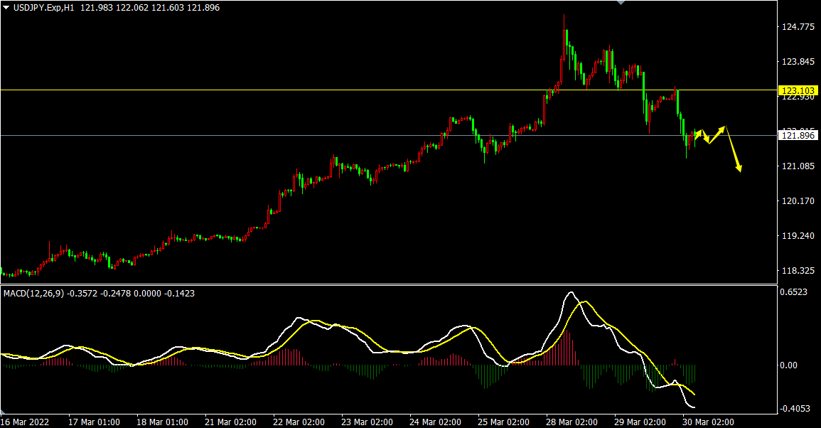 从美元兑日元1小时图走势来看,美元兑日元回踩却持续向下破位,且还走出了确认前低点下破压力的形态,这是结束多头的形态,美元兑日元这轮的拉升大致要由此转折。