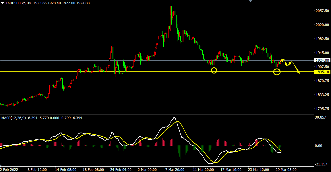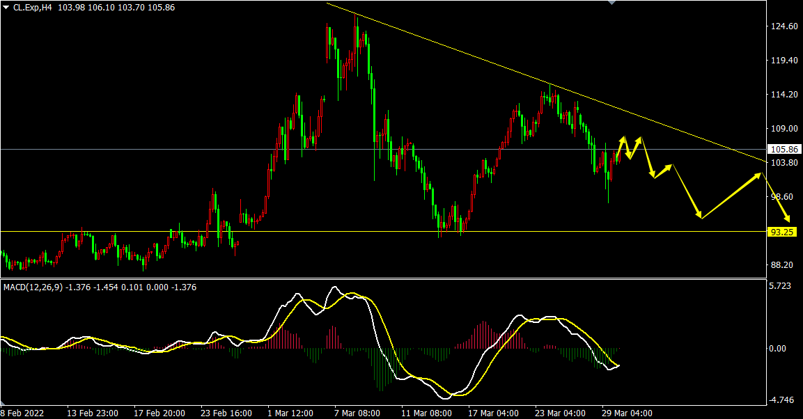 从WTI原油1小时图来看,原油若后市无新的意外发生,延续目前现状的话,走势波动大概率也会随着事情的常态化而波动下降,这也是市场情绪的体现,目前则继续技术面的回落预期,直至前低附近再考虑底部问题。