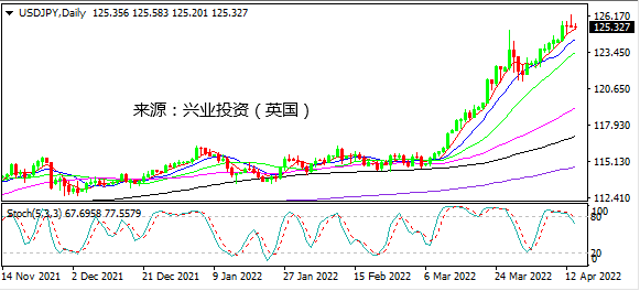 日图维持在MA5上方运行,连续收录十字星,随机指标倾向走低,存在回调的可能性。4小时图短期均线胶合,有望下探124.75。小时图拉升缺乏跟进,短线存在进一步回调的空间。日内建议125.70下方做空,紧设止损,下破125.10跟进。