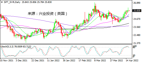 日图短暂刺穿26.00未能守稳接近收平,随机指标倾向自超买区域回落,显示下行风险。4小时图收录黄昏之星,关注MA20下破则有望打开进一步下行空间。小时图未能站稳26.00上方很快回落,不排除短线回调风险。日内建议26.00下方轻仓做空,谨慎止损,先看25.55。