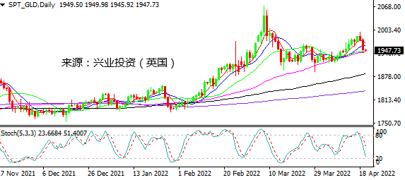 市场对美联储激进加息预期的影响掩盖了乌东部战火重启的影响。4月19日,俄罗斯表示,俄罗斯在乌克兰的特别军事行动已开启新阶段。美英加三国表示,将为乌克兰提供更多火炮武器。乌克兰方面则表示,俄乌冲突将在战场上决定,而不是在谈判桌上。欧洲部分避险资金流向美国,为美股提供支持,这也使得黄金等避险资产相较美元逊色。