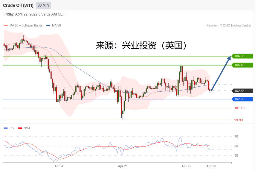 交易策略:在 102.00 之上,看涨,目标价位为 105.40 ,然后为 106.30 。