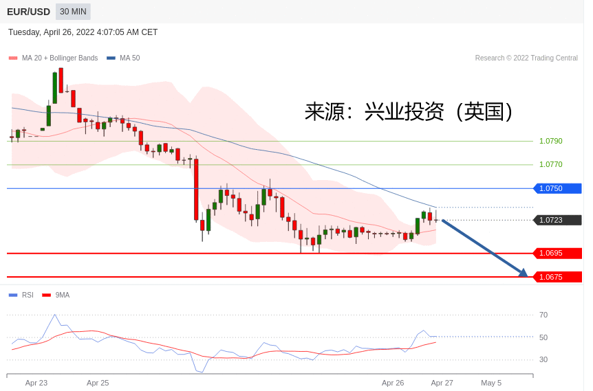 技术点评:只要1.0750阻力位不被突破,向下跌破1.0695位置的风险很高。