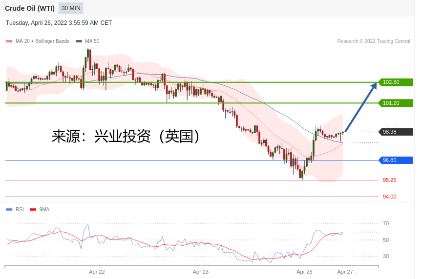 交易策略:在 96.80 之上,看涨,目标价位为 101.20 ,然后为 102.80 。