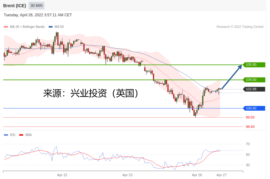 交易策略:在 100.60 之上,看涨,目标价位为 104.00 ,然后为 105.80 。