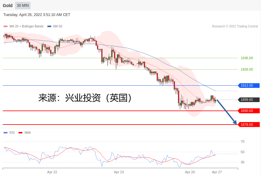 技术点评:只要1912.00阻力位不被突破,向下跌破1890.00位置的风险很高。
