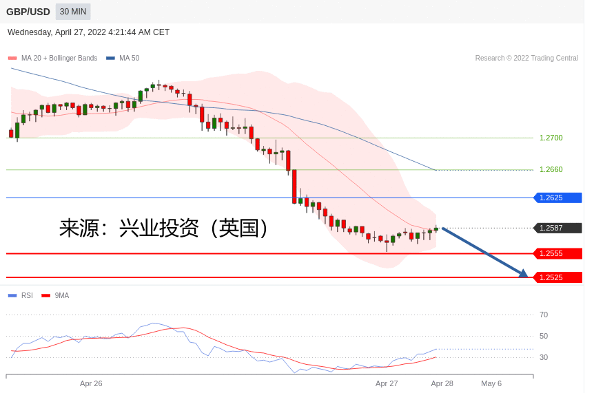 技术点评:只要1.2625阻力位不被突破,向下跌破1.2555位置的风险很高。