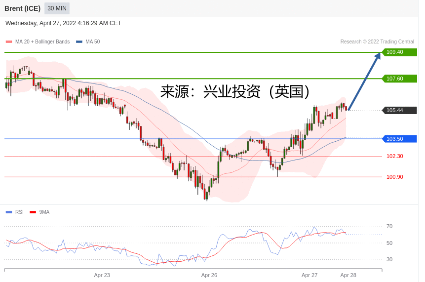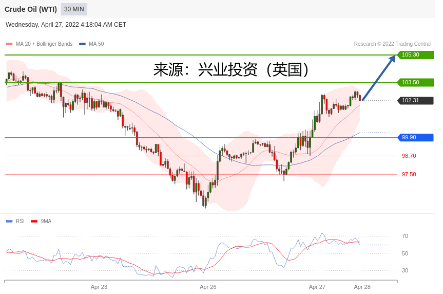 交易策略:在 103.50 之上,看涨,目标价位为 107.60 ,然后为 109.40 。