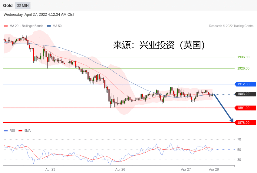 备选策略:在 1912.00 上,看涨,目标价位定在 1926.00 ,然后为 1936.00。