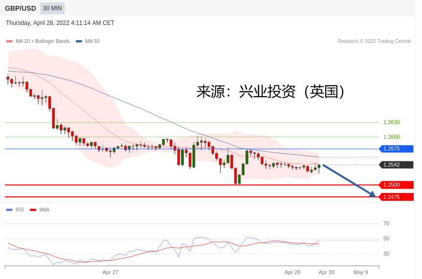 技术点评:只要1.2575阻力位不被突破,向下跌破1.2500位置的风险很高。