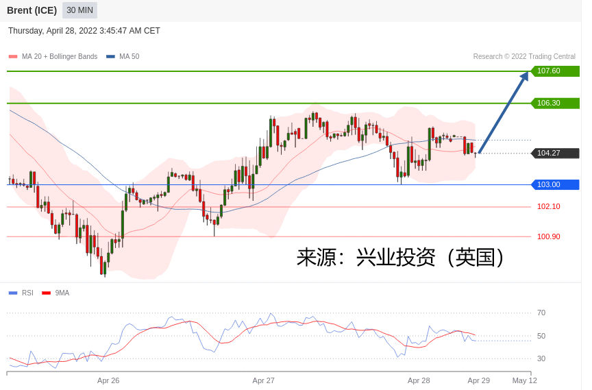 交易策略:在 103.00 之上,看涨,目标价位为 106.30 ,然后为 107.60 。