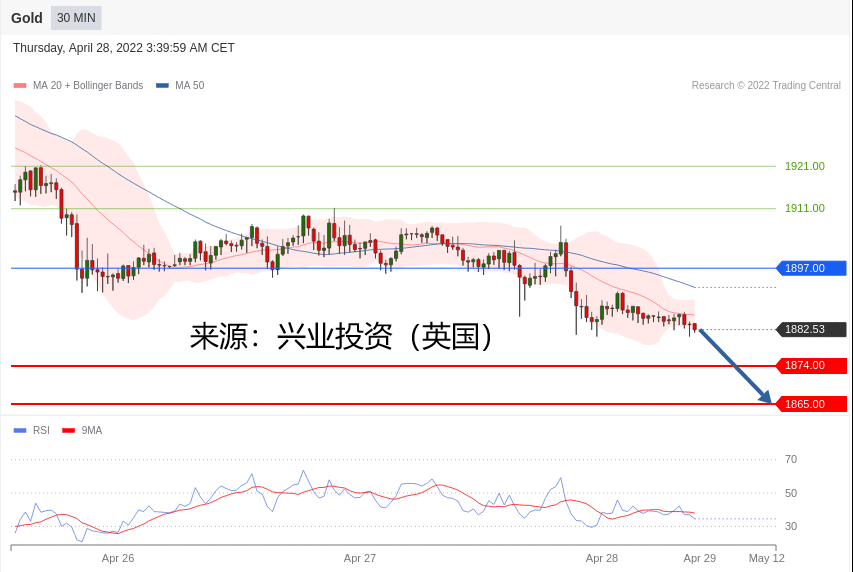 交易策略:在 1897.00 之下,看跌,目标价位为 1874.00 ,然后为 1865.00 。