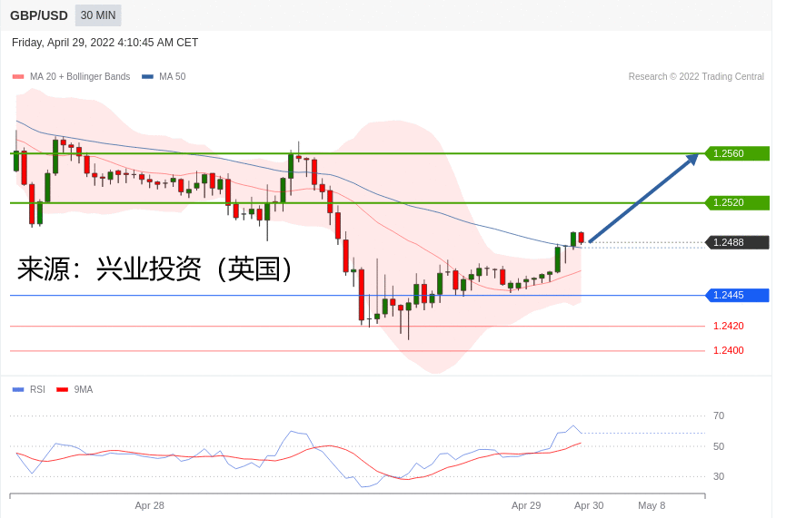 交易策略:在 1.2445 之上,看涨,目标价位为 1.2520 ,然后为 1.2560 。