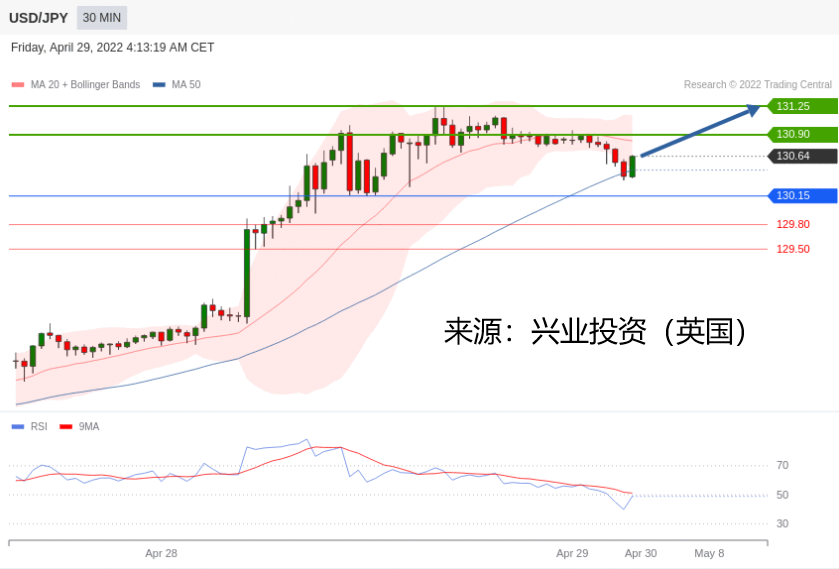 交易策略:在 130.15 之上,看涨,目标价位为 130.90 ,然后为 131.25 。