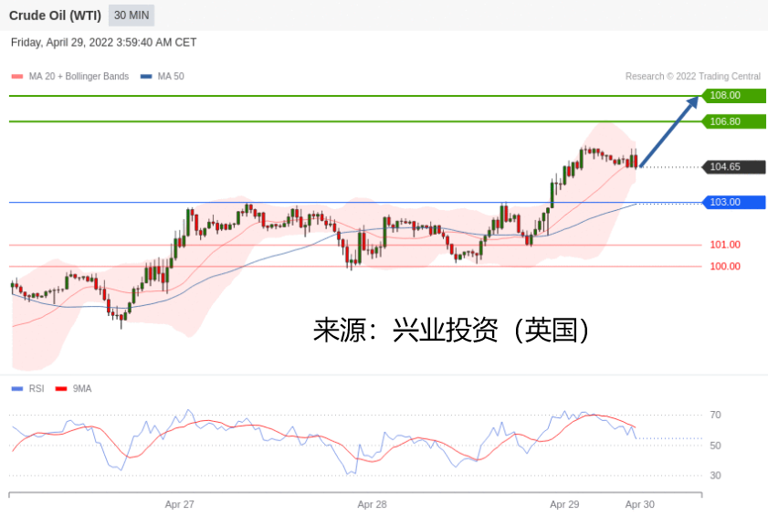 交易策略:在 103.00 之上,看涨,目标价位为 106.80 ,然后为 108.00 。