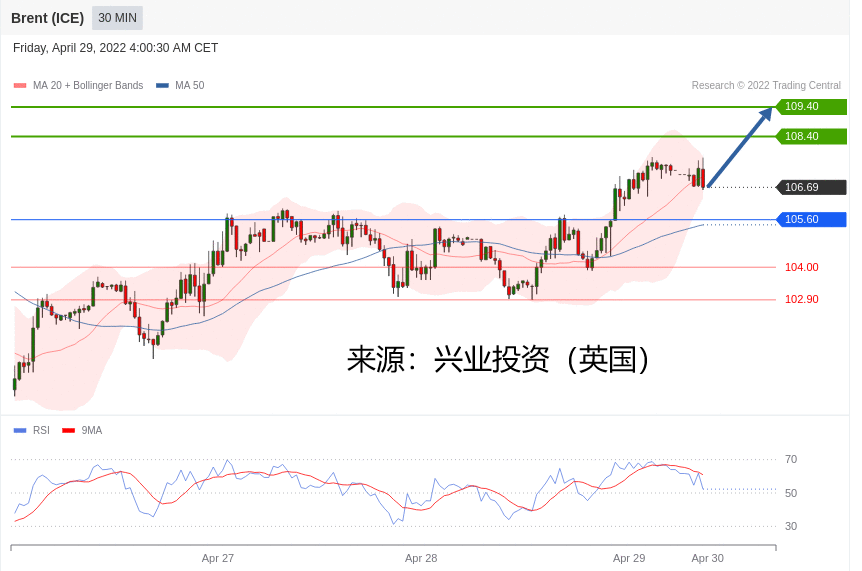 交易策略:在 105.60 之上,看涨,目标价位为 108.40 ,然后为 109.40 。