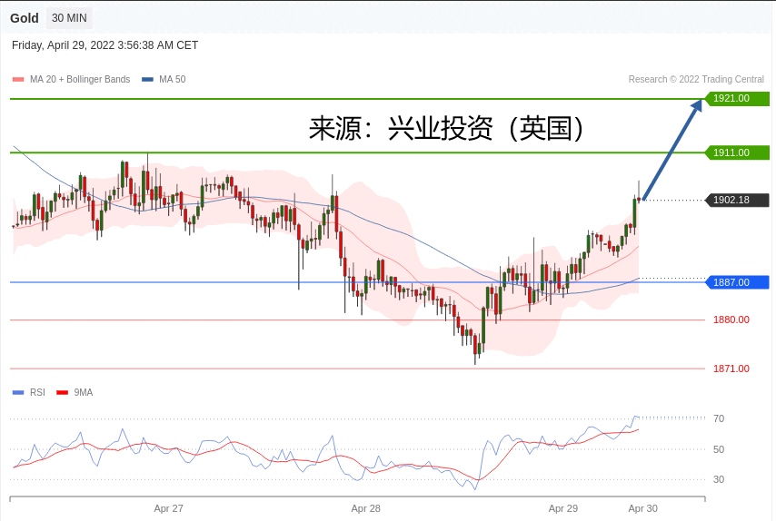交易策略:在 1887.00 之上,看涨,目标价位为 1911.00 ,然后为 1921.00 。