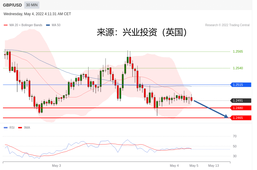 技术点评:跌破1.2480位置,将会引发下跌至1.2465。