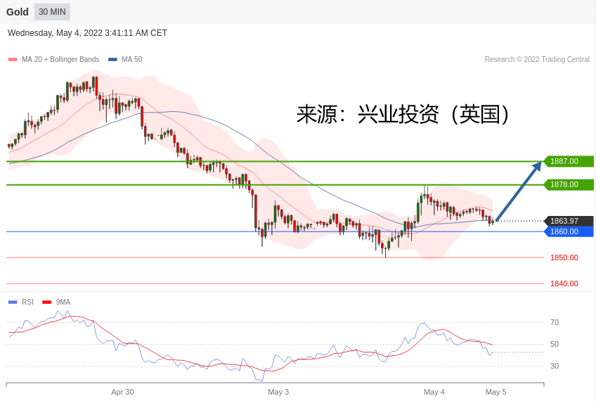 交易策略:在 1860.00 之上,看涨,目标价位为 1878.00 ,然后为 1887.00 。