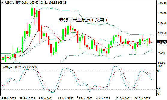 展望未来,投资者将密切关注定于周四召开的OPEC会议。OPEC为了将油价维持在100美元以上,预计将减少石油产量。此外,地缘政治和俄罗斯的能源制裁,中国疫情引发的需求形势,加上美国/伊朗核协议谈判,仍将是市场的主要驱动力。日内投资者将密切关注美国能源情报署(EIA)公布的官方每周原油库存。该机构预计截至4月29日当周原油库存可能减少116.7万桶,而此前一周增加69.2万桶。随后,市场的注意力将转向更广泛的宏观背景,石油交易员可能会关注风险偏好对本周美联储会议和美国就业报告的反应。