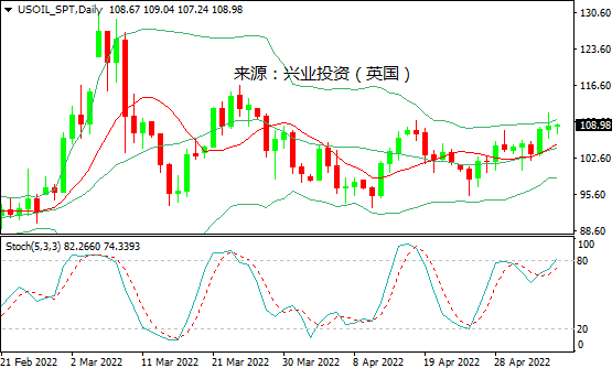 接下来,市场焦点转向美国油服公司贝克休斯(Baker Huges)的每周石油钻井平台数。石油钻井平台数是反映未来原油产量的先行指标,此前截至4月29日当周,原油钻井总数增加3座至552座,预期为549座。若数据显示原油活跃钻井上升,料加大油价回调压力。地缘政治仍是油市的主要重大风险。如果乌俄军事冲突进一步升级,则会抑制油价下行空间。与此同时,中国的新冠病毒疫情风险仍然值得关注。