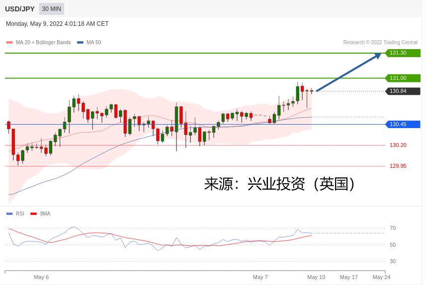 交易策略:在 130.45 之上,看涨,目标价位为 131.00 ,然后为 131.30 。