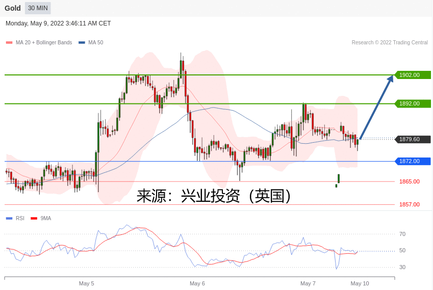 交易策略:在 1872.00 之上,看涨,目标价位为 1892.00 ,然后为 1902.00 。