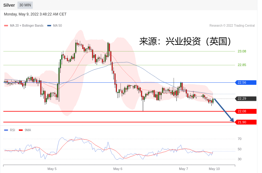 技术点评:只要22.56阻力位不被突破,向下跌破22.08位置的风险很高。