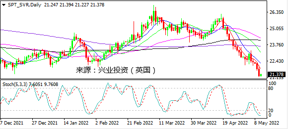 日图以大阴线跌破前期低点21.40一线,短线偏离均线,警惕短线修正可能性。4小时图在21.10一线企稳反弹,但整体走势仍偏空。小时图连续下行后随机指标有筑底上行倾向。日内建议短线寻求21.25上方做多,止损21.10一线,先看21.65。