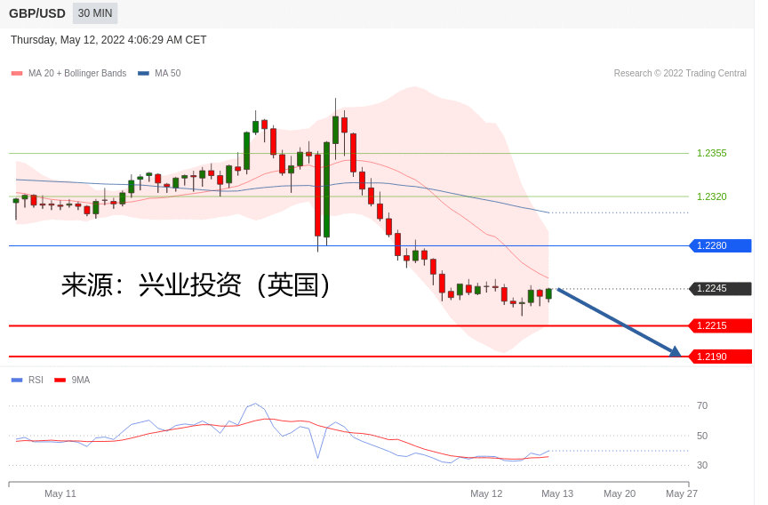 技术点评:跌破1.2280,为空头信号,向下的目标将会是1.2215。