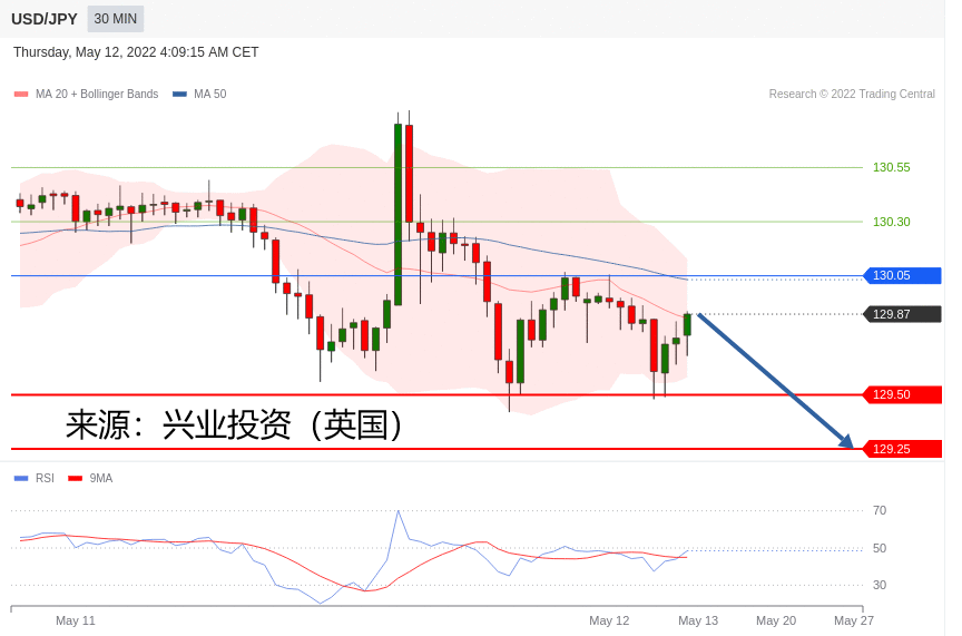 交易策略:在 130.05 之下,看跌,目标价位为 129.50 ,然后为 129.25 。