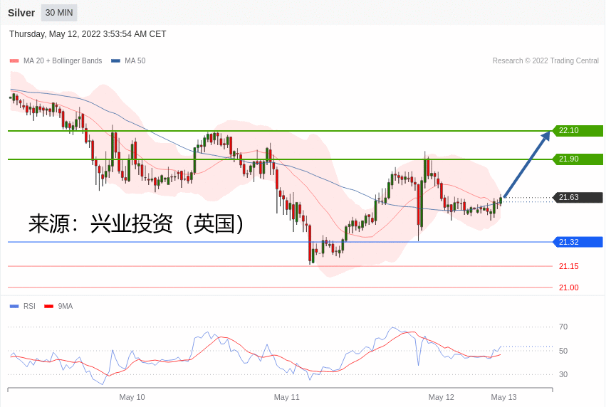 交易策略:在 21.32 之上,看涨,目标价位为 21.90 ,然后为 22.10 。