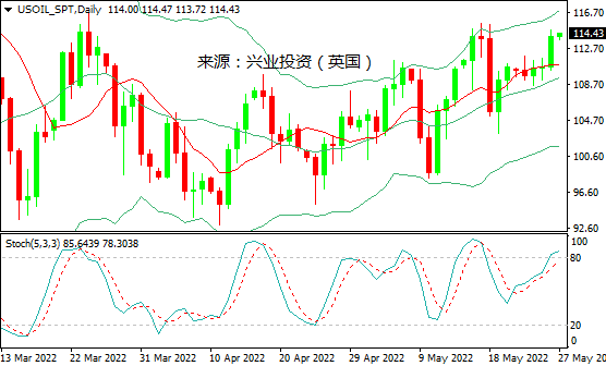 接下来,市场焦点转向美国油服公司贝克休斯(Baker Huges)的每周石油钻井平台数。石油钻井平台数是反映未来原油产量的先行指标,此前截至5月20日当周,原油钻井总数大幅增加13座至576座,预期为565座。若数据显示原油活跃钻井上升,料给油价带来回调压力。地缘政治仍是油市的主要重大风险。如果欧盟就禁止俄罗斯原油进口达成协议,料会推动油价大幅上涨。与此同时,中国的新冠病毒疫情风险仍然值得关注。