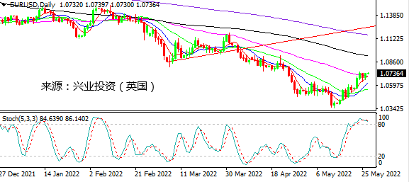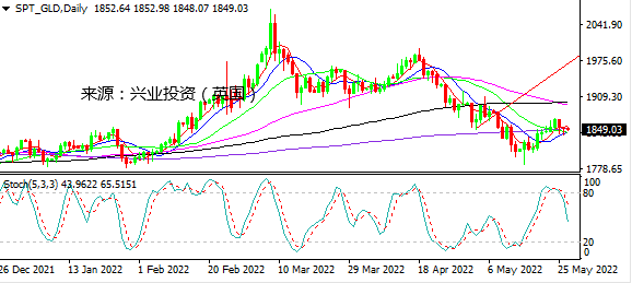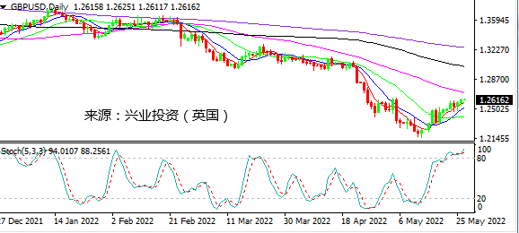 尽管美国经济数据显示,美国一季度GDP年化季率从-1.4%下滑至-1.5%,为2020年年中来首次转负,表明美国经济增长正在放缓,甚至可能随着加息的推进有衰退的风险。不过,随着市场对美联储更加激进加息预期的降温,加上美国零售商公布的财报对获利预估乐观,市场情绪继续缓和,风险资产维持坚挺,而美元承受美联储加息预期降温以及市场风险偏好的双重打压。