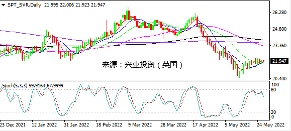 日图企稳MA10,当前位于22.20-21.70区间波动,随机指标倾向下行。4小时图横盘整理,等待方向突破。小时图在21.70一线企稳反弹乏力,整理略偏弱。日内建议寻求22.20-21.70区间机会,略倾向高空。