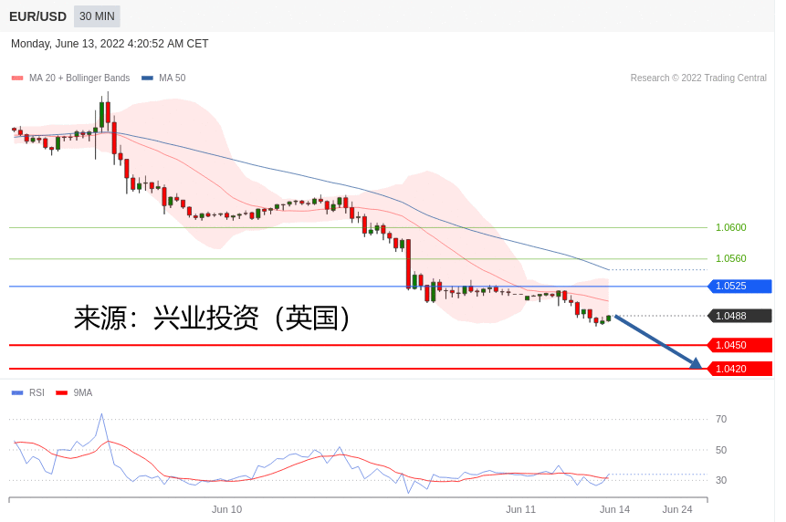 技术点评:只要1.0525阻力位不被突破,向下跌破1.0450位置的风险很高。