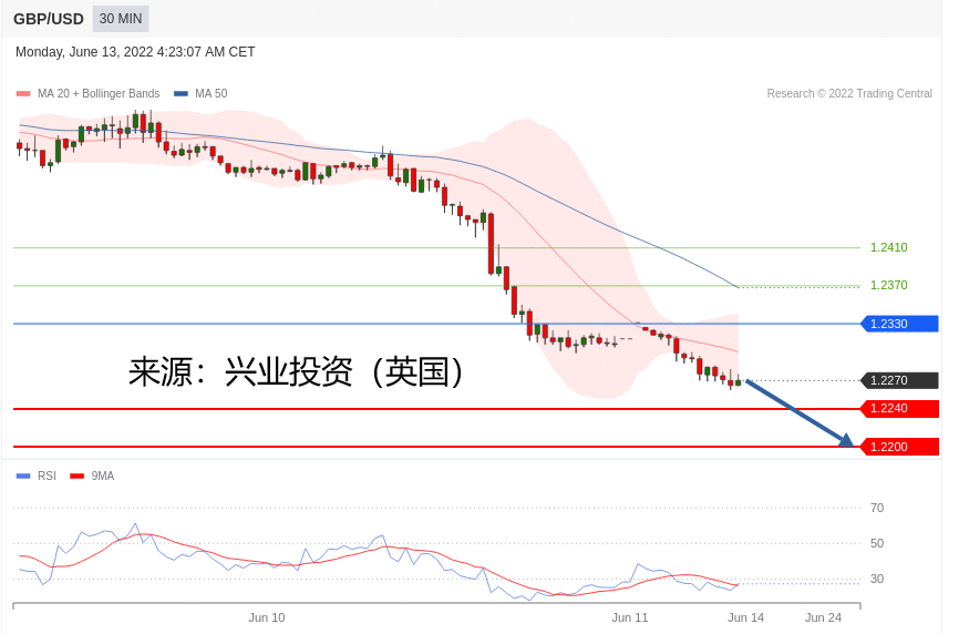 技术点评:跌破1.2240位置,将会引发下跌至1.2200。