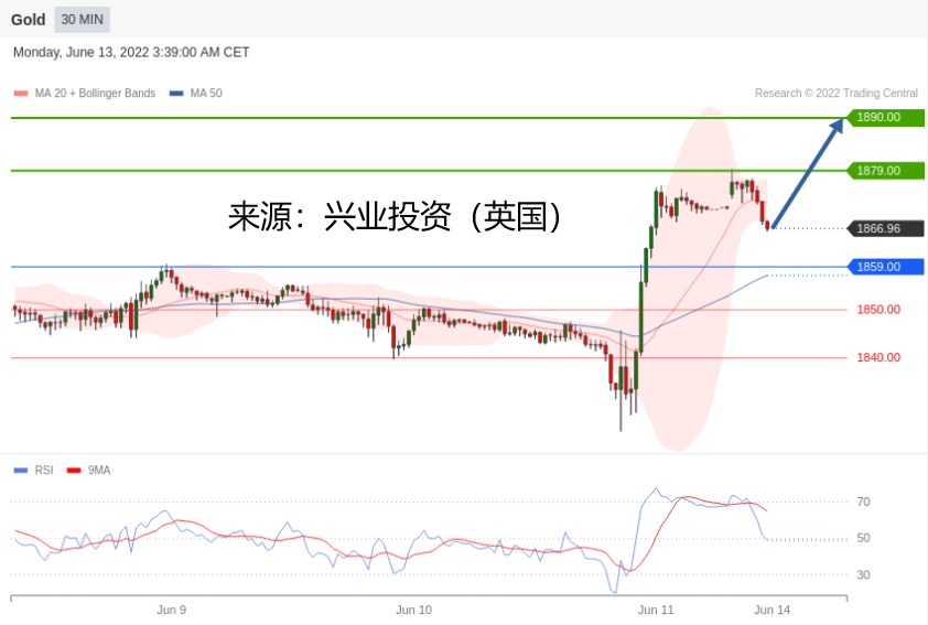 交易策略:在 1859.00 之上,看涨,目标价位为 1879.00 ,然后为 1890.00 。