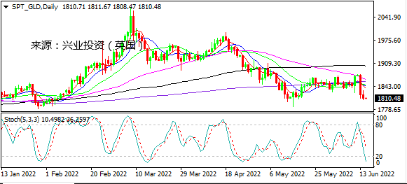 周二美元指数延续强势,短暂下探104.62后再刷新高105.30,因市场对美联储激进加息的押注愈发疯狂。这使得以美元计价的黄金继续在低位弱势震荡,但仍处于1800上方。非美货币走势分化,风险货币受欧美低迷股市拖累大跌,其中英镑跌超200点,向疫情爆发时低点逼近,澳元和纽元均下行测试5月低点,加元则重返宽幅整理区间支持。日元延续下跌走势,跌幅超过150点,继续刷新20年低点。不过,美元最大的对手货币在美联储利率决议前表现谨慎,维持在近期回调低位拉锯,轻微收涨。