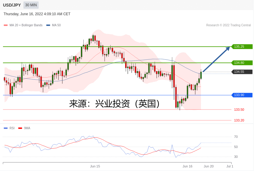 交易策略:在 133.90 之上,看涨,目标价位为 134.80 ,然后为 135.25 。