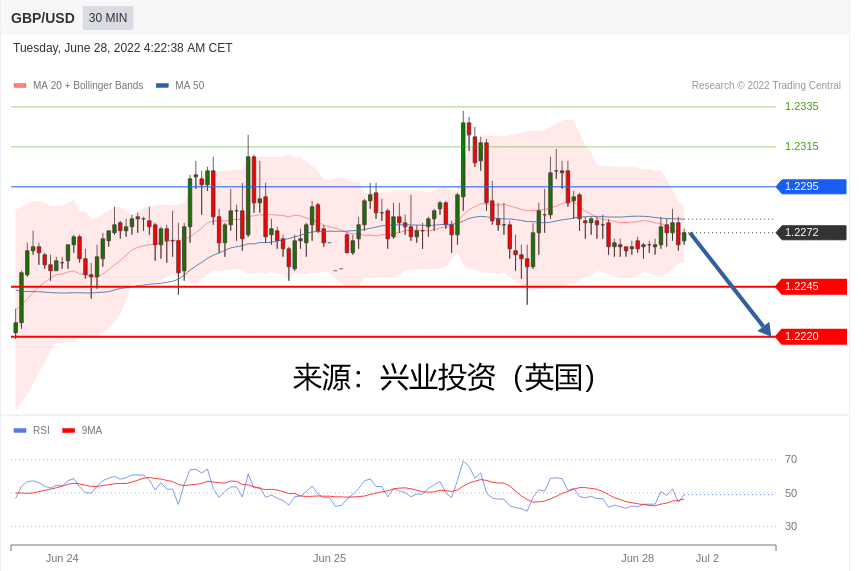 技术点评:只要1.2295阻力位不被突破,向下跌破1.2245位置的风险很高。