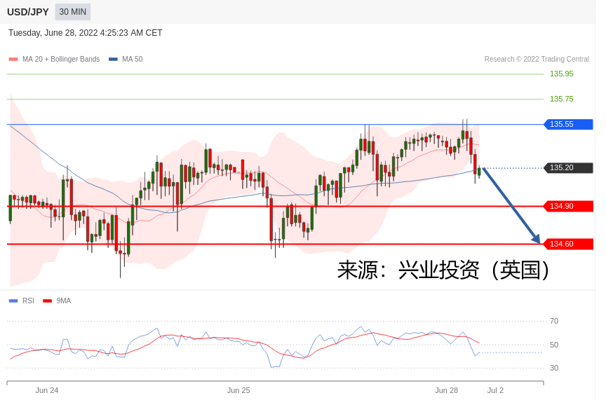 交易策略:在 135.55 之下,看跌,目标价位为 134.90 ,然后为 134.60 。