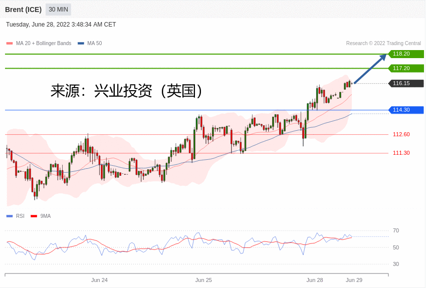 交易策略:在 114.30 之上,看涨,目标价位为 117.20 ,然后为 118.20 。