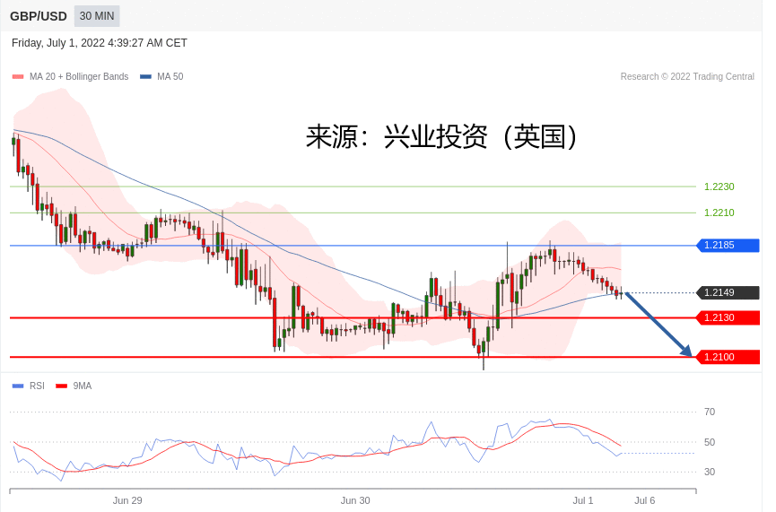 技术点评:跌破1.2130位置,将会引发下跌至1.2100。
