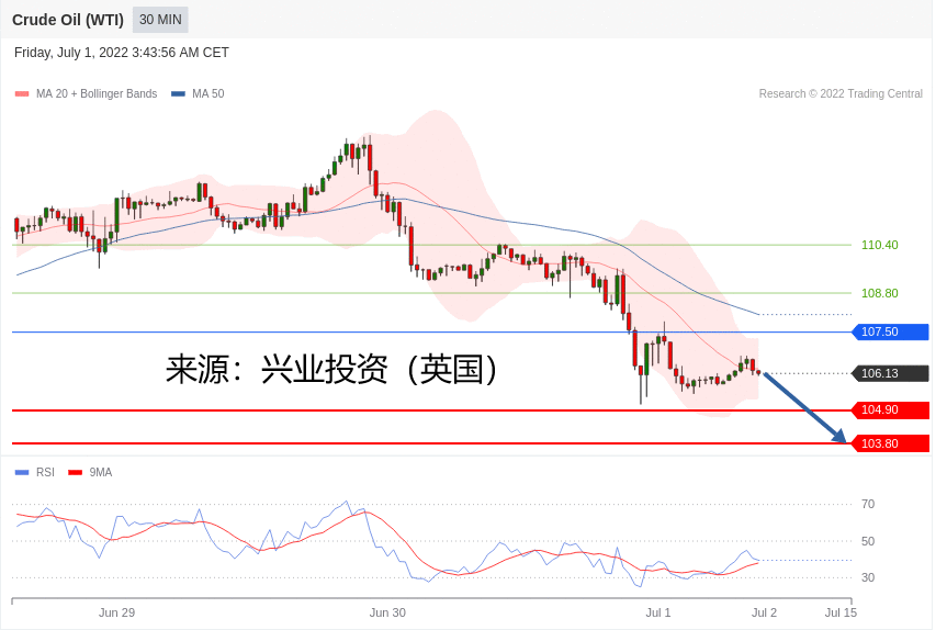 技术点评:只要107.50阻力位不被突破,向下跌破104.90位置的风险很高。