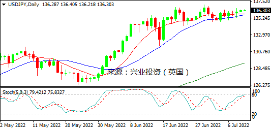 美元兑日元上周最后一个交易日维持宽幅震荡,早些时候受安倍晋三遇袭的突发新闻的冲击而大幅下跌至135.321,后来受美国就业数据的提振上涨至一周高点 136.557水平,随着美元回落,美元兑日元小幅下滑,随后在136上方窄幅波动。美联储和日本央行的不同政策立场料继续支撑美元兑日元。