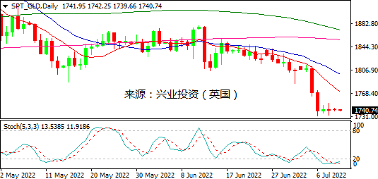美元指数上周五一度受到非农就业报告的提振,到达107.786的近20年新高,但随后反转下滑,收低于106.956水平,因平均时薪回落预示未来家庭总需求会下滑,从而可能导致国内生产总值下降。美国劳工统计局周五公布的数据显示,6月份美国非农就业人数增加了37.2万,好于市场预期的26.8万,5月份数据由增长39万下修为增长38.4万。同时以平均时薪衡量的年度工资涨幅从5月份的5.3%小幅降至5.1%,劳动力参与率从62.3降至62.2%。
