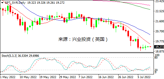 日图显示,银价在主要均线下方交易,各主要均线仍保持下行势头,随机指标走高。4小时图显示,银价在10和20周期均线附近交易,仍低于下滑的100和200周期均线,随机指标持平。小时图显示,银价在上扬的10和20小时均线上方交易,但低于下滑的100和200周期均线,随机指标走高。日内建议在19.45附近卖出,反弹至19.60附近加仓,止损位设于19.75。