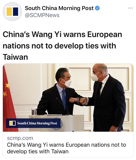 《南华早报》称,欧洲国家对台湾的态度正在发生微妙变化,特别是在新冠肺炎疫情和中美对抗加剧后,欧洲公众对中国的看法越来越负面。